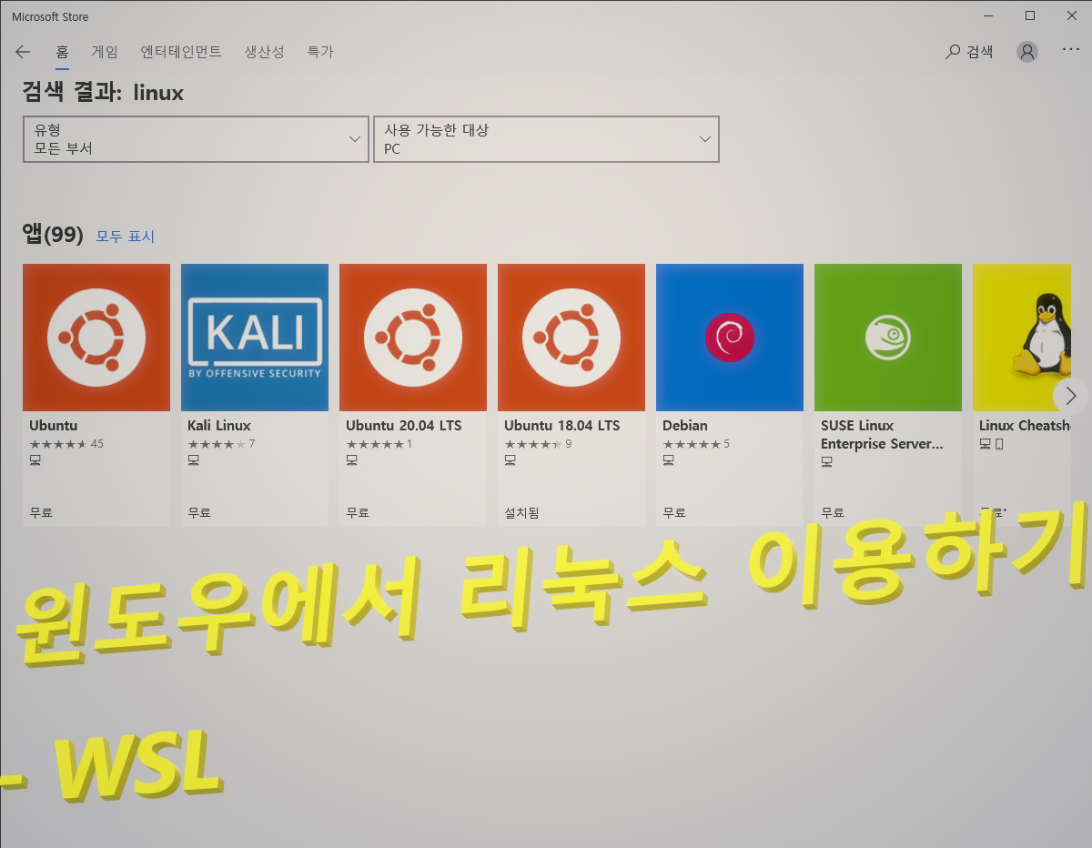 WSL이라고 하는데 Windows Subsystem for Linux 의 줄임말이다