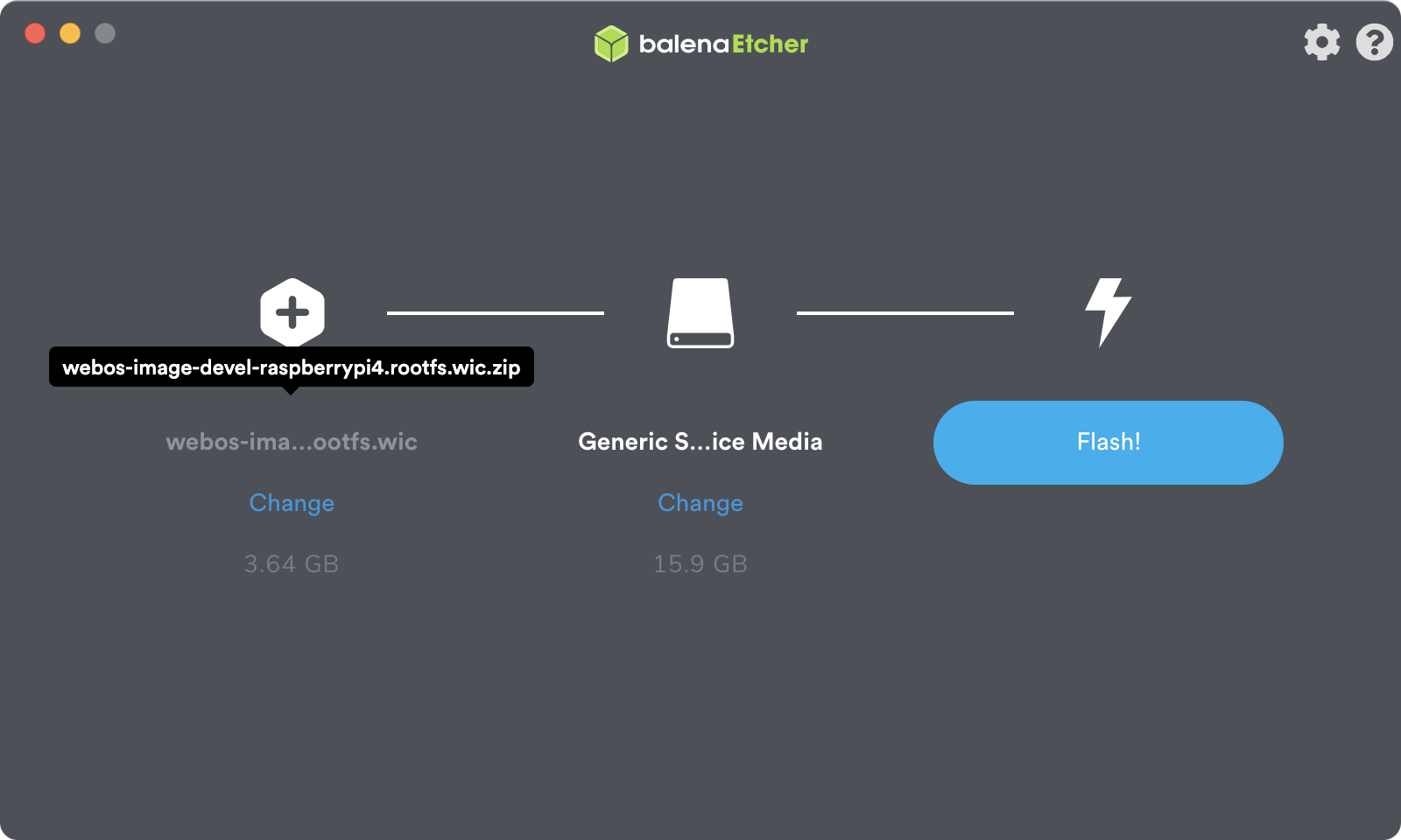 왼쪽에는 webos-image-raspberrypi4.rootfs.wic 파일을 선택하고